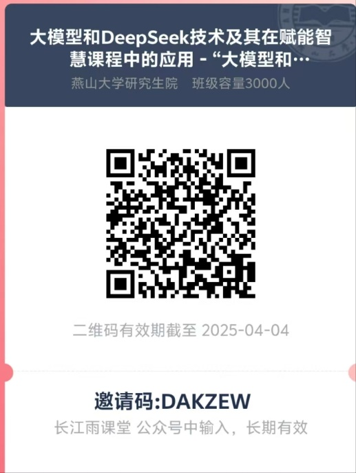 原通知链接:米兰网页版参加“大模型和DeepSeek技术及其在赋能智慧课程中的应用”线上培训的通知-燕山大学研究生院https://gs.ysu.edu.cn/info/1004/6748.htm