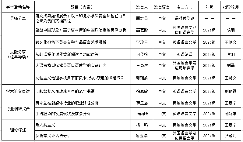 为促进我院研究生学术交流,活跃学术氛围,拓宽学术视野,激励学术创新,我院本年度将继续开展硕士研究生学术沙龙系列活动,沙龙包括“导师分享”、“文献分享(经典导读)”、“学术论文宣讲”、“行业调研报告”、“技术方法推荐”、“理论综述”等六大模块,每期10-12人汇报,采用主题宣讲和师生互动形式进行。现将2025年第五期活动安排公布如下。欢迎各位导师和同学踊跃参加。