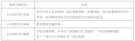 2.院、校检查。依据结题验收说明(见附件2)对项目的进展或完成情况进行严格审查。2024年立项校级项目结题验收工作由各学院组织开展(评出的优秀项目占比不超过20%)。2024年11月29日前,学院完成结题验收工作,根据验收结果在“燕山大学大学生创新训练计划系统”中完成项目审核,并导出“结题报告汇总情况”“项目延期结题汇总”和“项目中止申报汇总”。