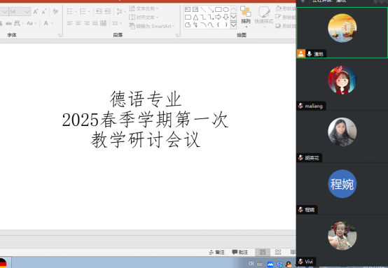 2月16日晚,西语系德语专业通过腾讯会议成功举行了本学期首次教学研讨会,会议由德语专业负责人潘地老师主持,全体德语教师参加了会议。