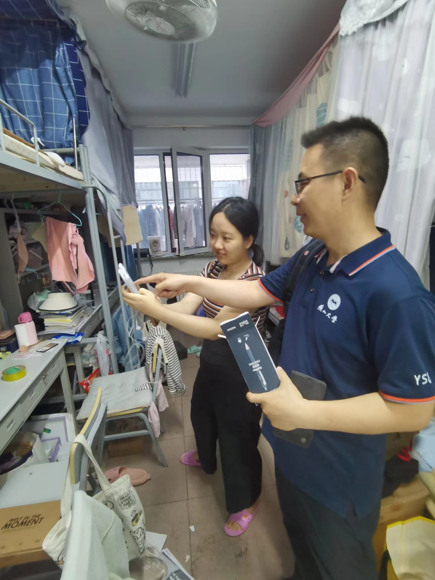 走访中,学院领导与即将踏上新征程的学子们进行亲切交流,询问同学们的毕业去向行程,以及近日离校打算,叮嘱毕业生有序安全离校。屈晓阳书记鼓励毕业生们要坚定理想信念,勇于担当作为,在之后的学习和工作中继续发扬母校的优良传统和作风,为国家和社会的发展贡献自己的力量。王林海院长希望毕业们有机会常回母校看看,与学校和老师保持联系,及时沟通工作情况和各类有益信息,鼓励毕业生以积极主动的心态面对生活中的挑战。老师们亲切询问了毕业生的就业进度、未来升学和工作的规划安排以及当前存在的困难,对同学们关心的毕业手续办理和求职问题等进行耐心地解答和说明,并叮嘱同学们要文明离校,遵守学校的各项管理规定。