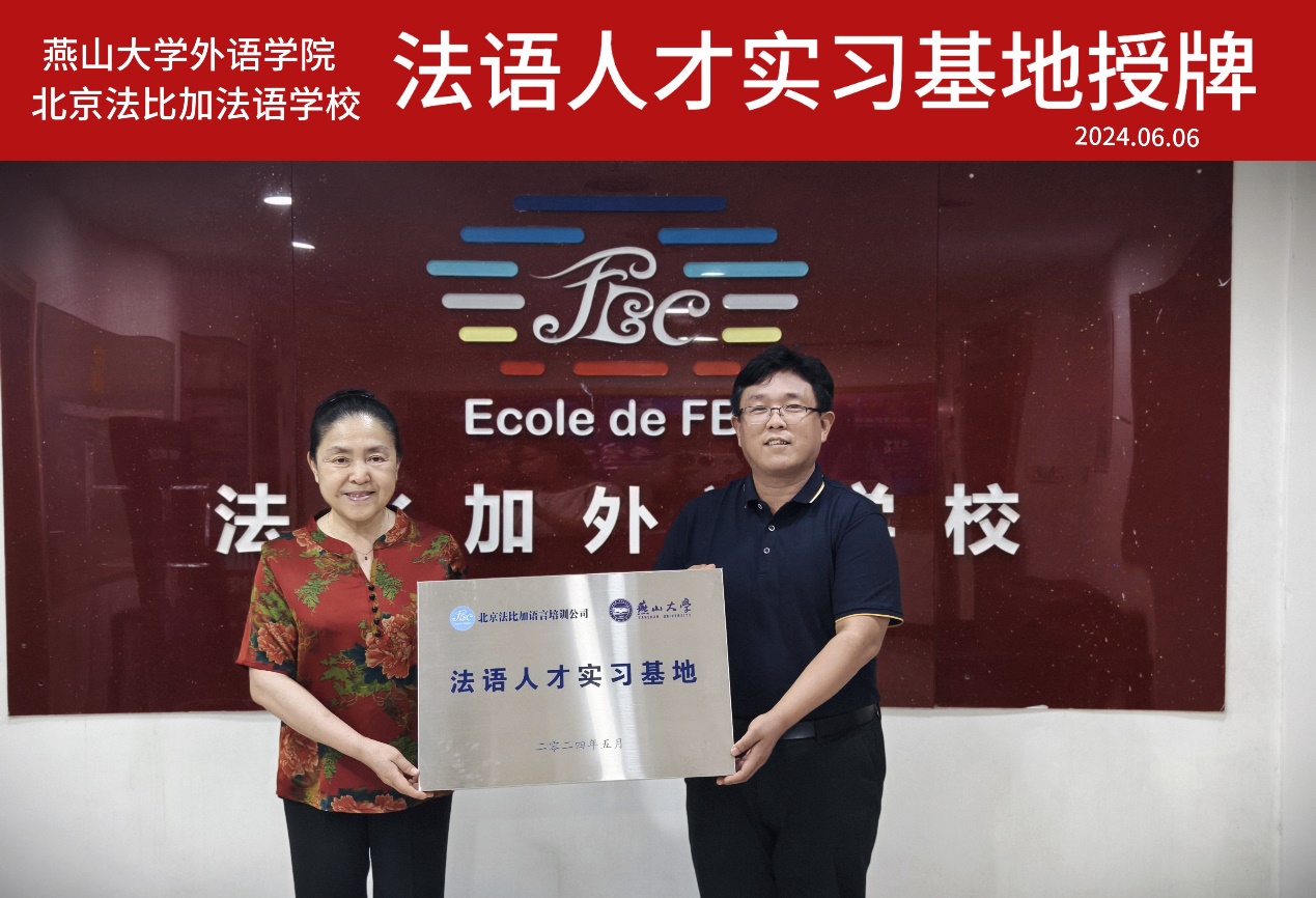 为拓宽毕业生就业渠道,进一步推动产学研一体化深度融合,为学生专业实习实训和就业工作搭建实践育人、高质量合作平台,6月6日上午,米兰MILAN(中国)副院长赵志刚,西语系法语专业负责人李姝老师等走访了校友企业北京法比加法语学校,并进行了法语人才实习基地签约挂牌仪式。
