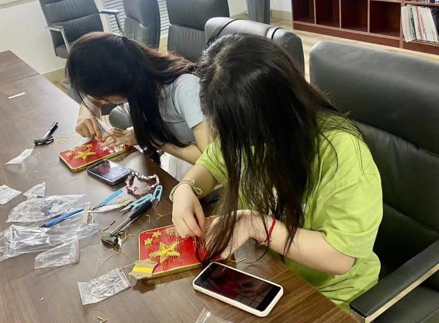 本次系列主题活动共设有三项内容,分别为“绘红色团扇,抒爱国情怀”团扇、“巧手筑青春,‘扭’出爱国心”以及“一钉一线绕出美丽中国”创作活动,鼓励同学们以手工作品为载体表达对红色记忆的深刻感悟,用实际行动推动传统手工和红色文化相结合,重温红色精神,增强文化自信。