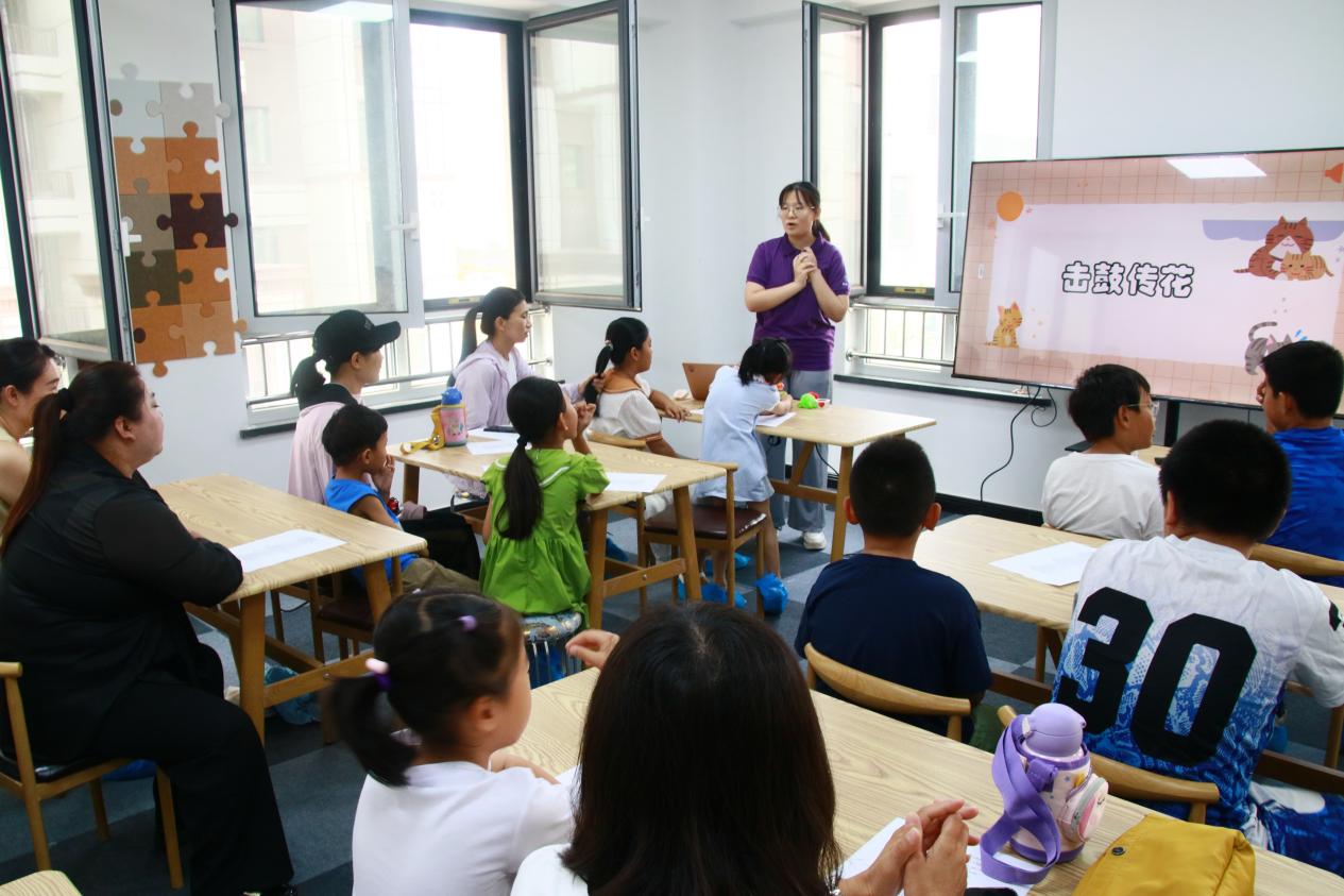 活动在“击鼓传花”的游戏中拉开了序幕,授课的志愿者们鼓励小朋友们勇敢地做自我介绍,现场气氛迅速升温,小朋友们也放下了初来乍到的拘谨,迅速融入其中。