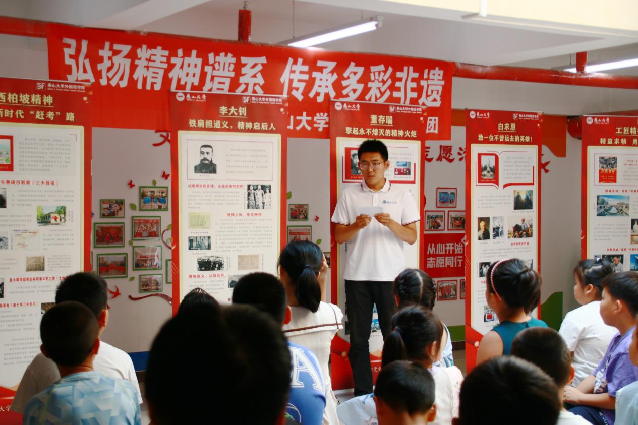 在活动中,党史传习实践团深入昌黎县前两山村、抚宁紫荆社区、戴河镇车站社区以及自然家园社区的课堂,聚焦于河北地区精神谱系中的杰出代表,深入剖析其内涵,全面展示西柏坡、塞罕坝精神特质在当今社会的深远意义和核心作用,传承革命之火,生动讲述身边的“精神宝藏”。讲解结束后,党史传习实践团成员引导孩子们体验漆扇制作、拓印艺术、衍纸工艺、竹编技艺和珐琅绘制等传统非遗技术,通过观察、思考与亲身实践,使学习在真实体验中得以实现,在孩子们心中播下红色火种,从红色精神与优秀传统文化中汲取前行的动力。