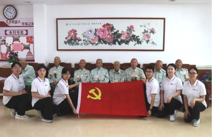 “听英雄往事,燃爱国情怀”。实践团来到全国唯一一所以“八一”命名的敬老院,向抗战老兵进行慰问演出、聆听那些感人至深的往昔,传承那份坚如磐石的精神,共同向这些伟大的前辈致以最崇高的敬意。休养在八一敬老院的老兵们,是新中国的一笔宝贵财富,他们都是共和国的功臣,是行走的“历史书”、革命历史教育的“活教材”。参与活动的老人们平均年龄超九十岁,他们亲切地向成员们讲述了自己在抗战时期战火纷飞的岁月,字里行间充分流露出的老一辈无产阶级革命者艰苦奋斗、自力更生的精神,令在场同学无不动容,激发了同学们作为青年的爱国志,坚定了同学们的报国梦。