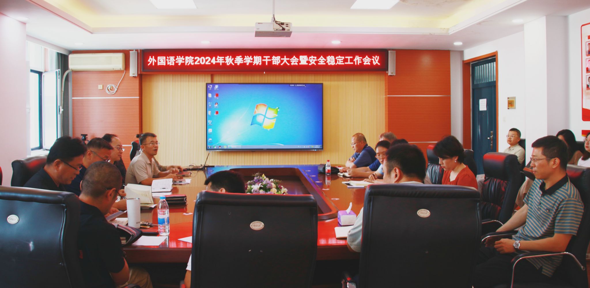 学院党委书记屈晓阳结合开学初学校相关部门下发的安全工作提示传达了学校相关安全稳定工作要求和部署了本学期学院的安全稳定工作,并提出了三点意见和要求:一是要认真学习领会上级有关精神,不断提高思想认识和工作站位。二是深入谋划和积极推进,狠抓贯彻和落实。三是要安全稳定常抓不懈,为内涵式高质量发展营造和谐稳定的环境。最后,屈书记希望全院各级各类干部尽快从假期休闲模式切换到紧张有序模式,调整好工作、学习和生活的节奏,使身心迅速进入正常的工作状态,在校党委的坚强领导下,在学院党政领导带领下,拼搏实干、努力奋斗、奋勇争先,为学校加快推进“双一流”建设和学院内涵式高质量发展贡献外语人的力量!