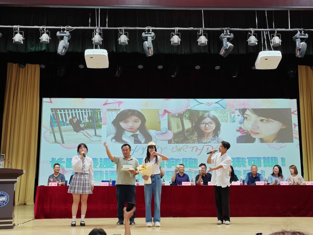 典礼当天,正赶上2024级新生谢燕生日,学院精心筹备了庆生仪式,日语系主任刘洪岩老师为谢燕送上蛋糕和祝福:“祝愿她在大学这片沃土上,勤奋学习,快乐成长,绽放出属于自己的璀璨光芒。”