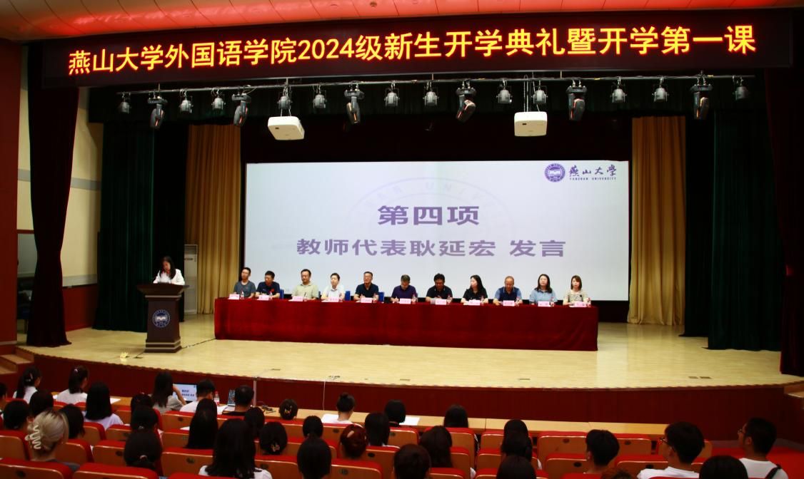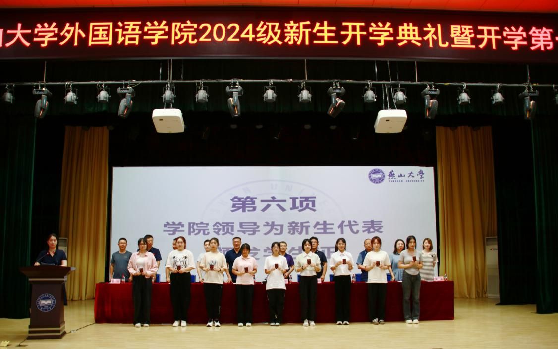 2024级赵函慧作为新生代表表达了对开启外院新生活的期待与欣喜。她分享了自己儿时对燕山大学的憧憬和向往,字字真挚,句句真切地抒发了对燕山大学的归属感。展望未来,她期待与新同学们一道,肩负起讲好中国故事、传播中国声音的使命,践行燕山大学“厚德、博学、求是”的校训,为推动中外文化交流贡献力量。
