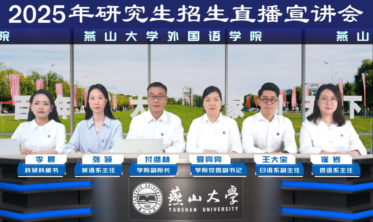 9月21日晚19:00米兰网页版2025年硕士研究生招生直播宣讲会在中国教育在线直播平台顺利召开。由学院主管科研与研究生培养的副院长付继林、党委副书记夏亮亮、英语系系主任张颖、日语系副主任王大宝、俄语专业负责人崔岩、科研科秘书李晨组成的研究生招宣小组在直播间与考生面对面交流互动,5700余名考生进入直播间听会。