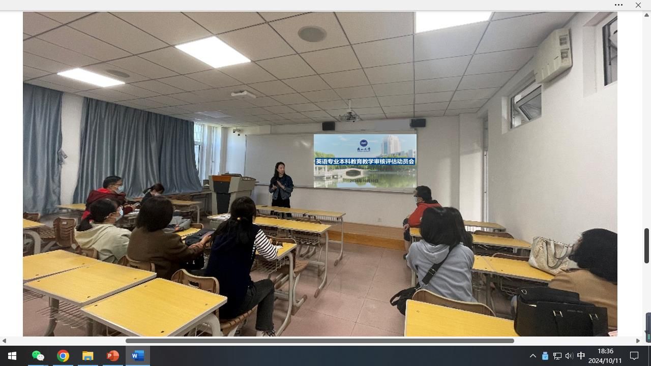 最后,英语系主任张颖总结了会议内容,并对教师们在评估前的学习和准备提出了期望。她指出,本次审核评估不仅是对英语专业教学质量的一次全面检验,更是推动教师专业成长的重要契机。她鼓励全体教师以此次评估为动力,通过学习审核要求和优化教学方法,进一步提升教学水平。张颖主任还号召教师们在接下来的工作中继续深入学习评估文件,积极参与备评准备,确保审核顺利通过,推动学院教学质量的提升与发展。