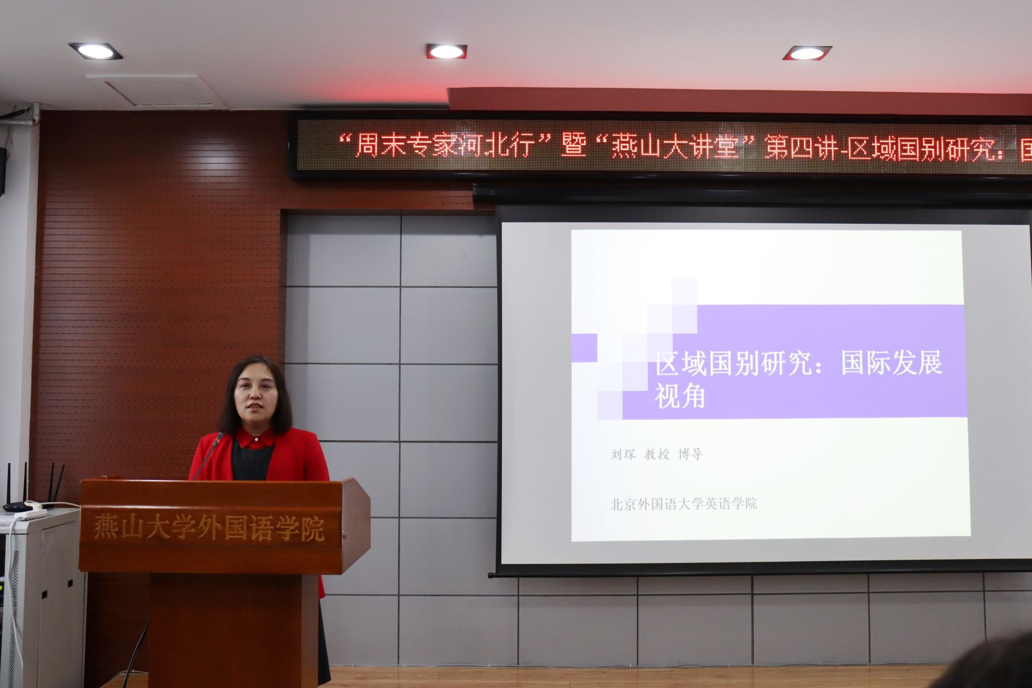 2024年10月18日,米兰MILAN(中国)成功举办“周末专家河北行”系列活动暨“燕山大讲堂”第四讲。本次讲座邀请北京外国语大学三级教授,博士生导师刘琛教授主讲,她就“区域国别研究:国际发展视角”进行了深刻剖析。刘琛授不仅是教育部区域国别研究基地北京外国语大学加拿大研究中心主任,还兼任联合国高专办独立专家;G20“教育与数字转型”和“文化保护融合与新生活方式”等两个工作组专家。同时刘琛老师也是加拿大第一民族委员会(First Nations,Canada)中国研究代表、哈佛大学女性联合会主席团主席(首位入选华人)并入选北京市“四个一批人才”、青海省“昆仑计划”、北京市“宣传文化系统高层次人才”。讲座由副院长付继林主持,学院百余名硕士研究生和部分导师听取了报告。