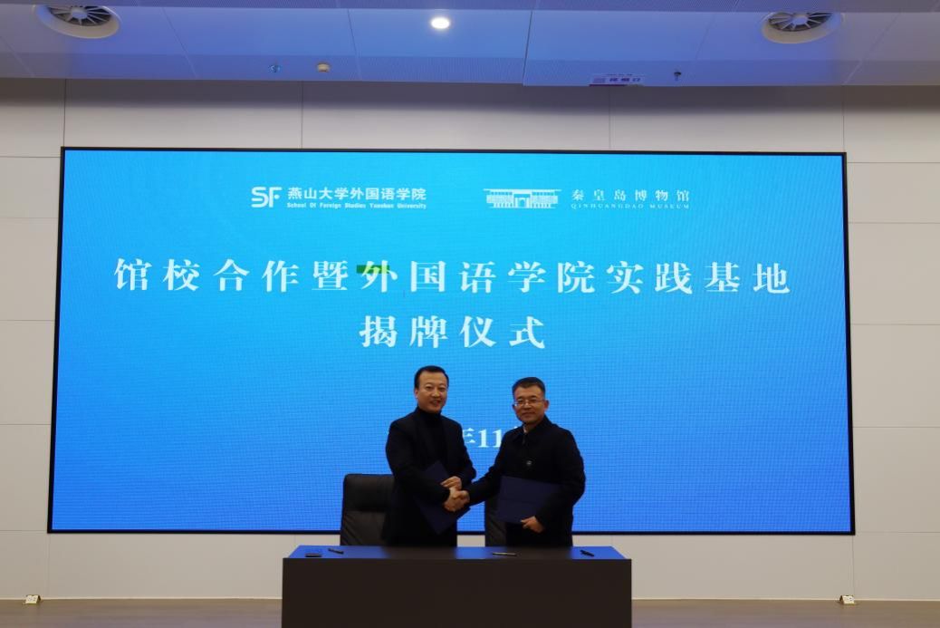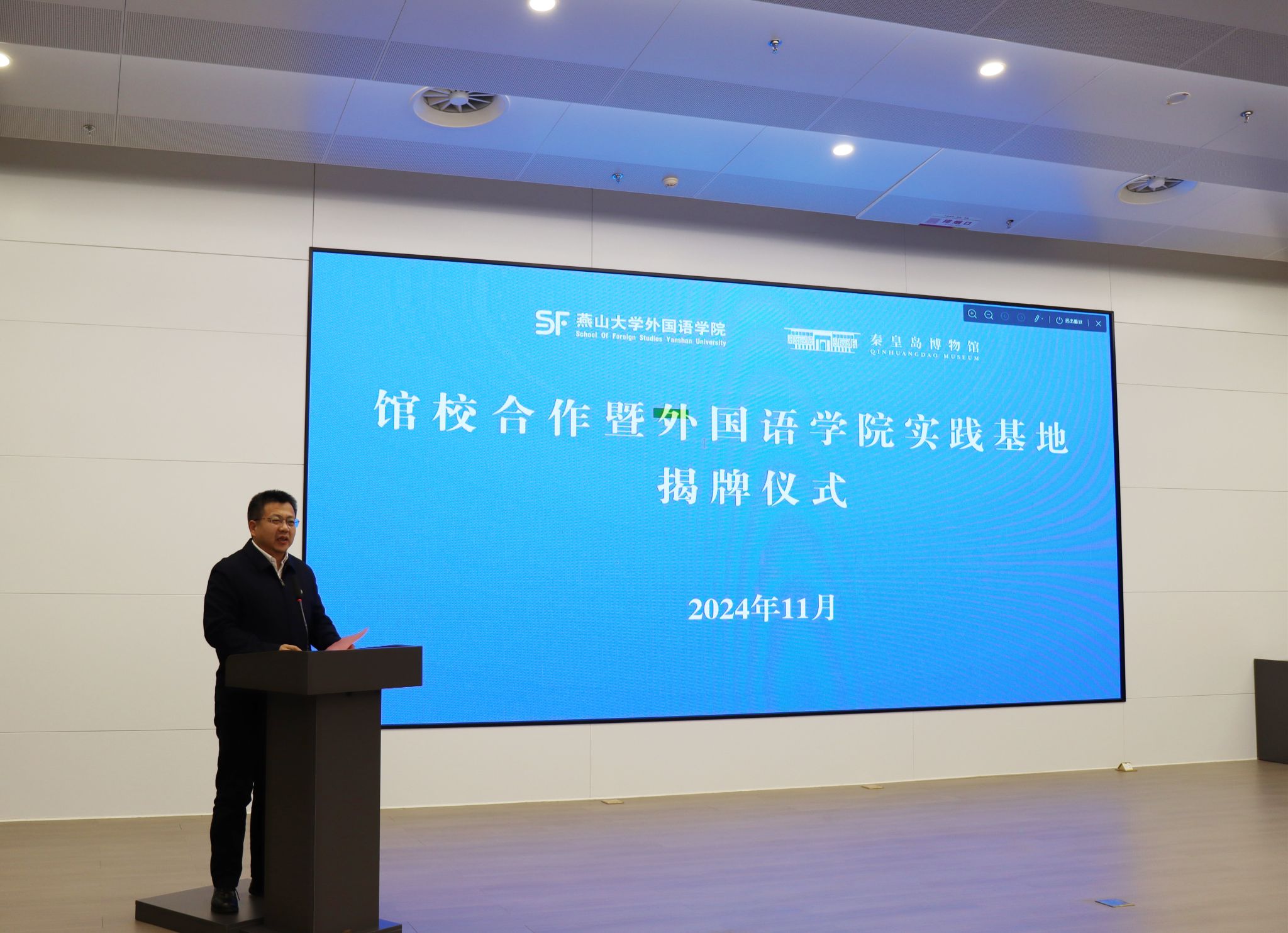 为进一步深化教育教学改革和优化人才培养模式,丰富高校师生教育教学实践活动,发挥社会文化育人资源作用,建立馆校共建合作育人机制。11月27日上午,米兰网页版与秦皇岛博物馆共建协议签订暨实践基地揭牌仪式在秦皇岛博物馆学术报告厅举行。燕山大学党委常委、副校长蔡星周,秦皇岛旅游和文化广电局二级调研员付红,秦皇岛博物馆馆长郭绘宇,米兰MILAN(中国)党委书记屈晓阳,院长王林海,副院长付继林,副院长赵志刚,学院党委副书记夏亮亮及馆员、教师、学生代表出席仪式,会议由秦皇岛博物馆副馆长孙昕主持。