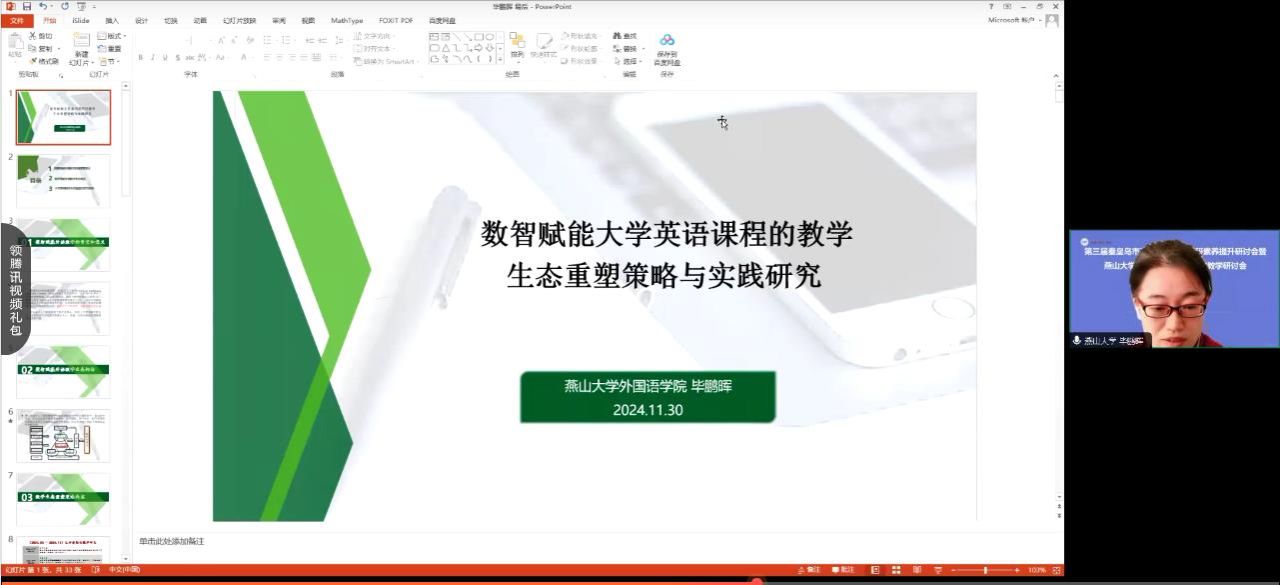 米兰网页版副教授毕鹏晖老师做了《数智赋能大学英语课程的教学生态重塑策略与实践研究》的报告,毕老师从数智赋能外语教学的背景和意义、数字赋能外语教学生态构念、大学英语教学生态重塑内容与实践三方面十分详细地汇报了自己在大学英语教学中应用数智赋能信息平台的经验,毕老师在教学过程中运用人工智能创设虚实共生的教学环境,十分生动形象,大大提高了学生的学习兴趣与参与热情。