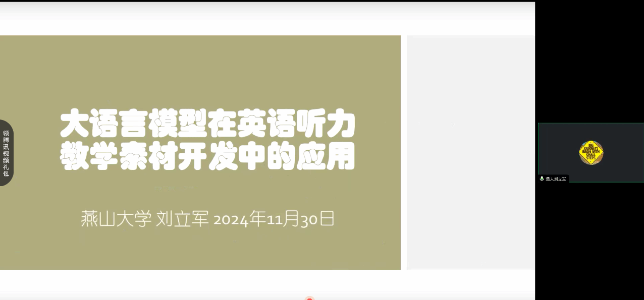 米兰网页版西语系主任刘立军副编审做了《大语言模型在英语听力教学素材开发中的应用》,刘老师先是为大家介绍了大语言模型的资源,接着他重点探讨了大语言模型在外语教学特别是听力教学中的应用,最后刘老师提出了“基于教材、超越教材、依托大语言模型、重构教学任务”的教学理念。