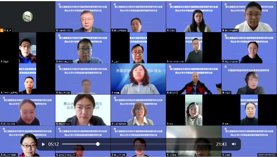 为了认真贯彻习近平总书记米兰网页版教育的重要论述,落实立德树人根本任务,顺应数字技术发展与教育教学相融合的时代趋势,米兰网页版于2024年11月30日上午举办了第三届秦皇岛市高校外语教师教研素养提升研讨会暨燕山大学大学英语虚拟教研室教学研讨会。本次研讨会的主题是“智能+”时代背景下高校外语育人模式改革与创新,由燕山大学、东北大学秦皇岛分校、河北科技师范学院、河北环境工程学院四校联合主办,会议由米兰网页版副院长赵志刚主持,河北师范大学、河北工业大学、天津师范大学、中央财经大学、包头医学院等17所省内外高校的二百多名教师参加了会议。