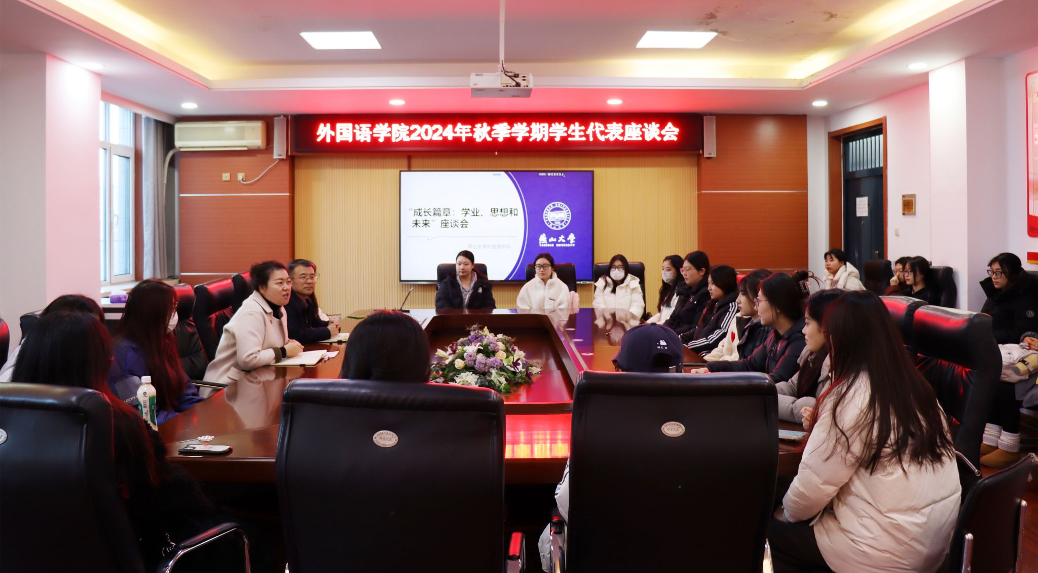 为深入了解学生的需求和想法,反馈学生意见,促进学院与学生的沟通和交流,2024年12月5日下午4点,米兰MILAN(中国)于人文馆417会议室召开了以“书写学生成长新篇章:学业、思想与未来展望”为主题的学生代表座谈会。本次座谈会邀请学院党委书记屈晓阳出席,党委副书记夏亮亮主持,20余名不同年级、不同专业的学生代表齐聚一堂,为学院和学校的发展建言献策。