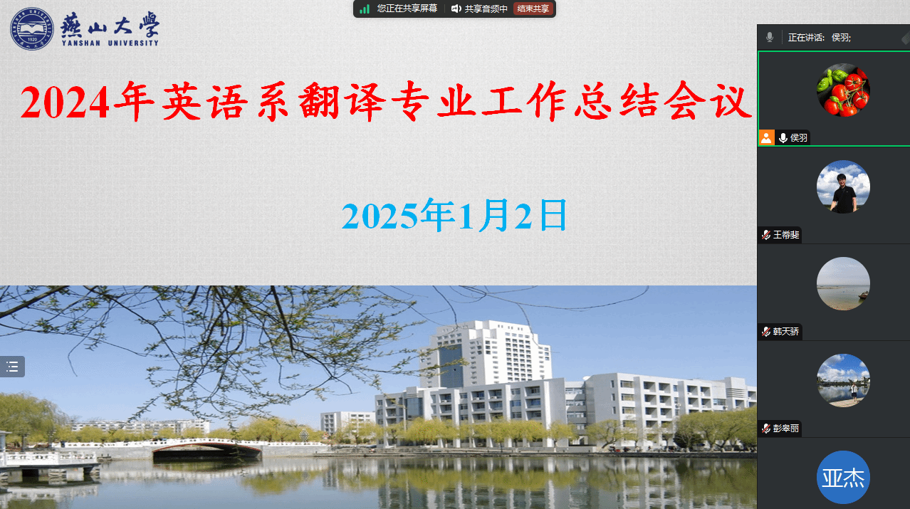 2025年1月2日,英语系翻译专业召开了线上2024年翻译专业工作总结会议,系副主任侯羽老师全面回顾2024年翻译专业发展成果,并明晰了2025年工作计划。