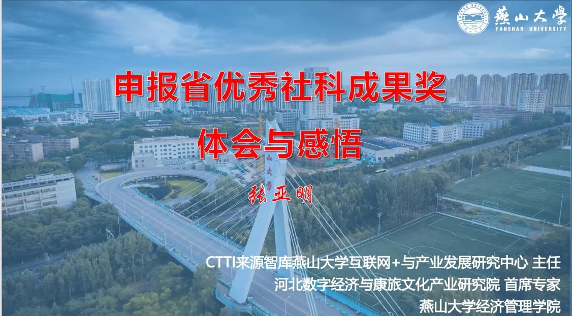 1月26日晚19点,米兰MILAN(中国)第十九届河北省社会科学成果奖申报动员会暨讲座以线上腾讯会议形式顺利举行。CTTI来源智库燕山大学互联网+与产业发展研究中心主任、省重点联系智库河北数字经济与康旅文化产业研究院首席专家张亚明教授,燕山大学社科处张雅君受邀参会。米兰MILAN(中国)党委书记屈晓阳,系主任及符合申报条件的老师参加了动员会和讲座。会议由米兰MILAN(中国)副院长付继林主持。