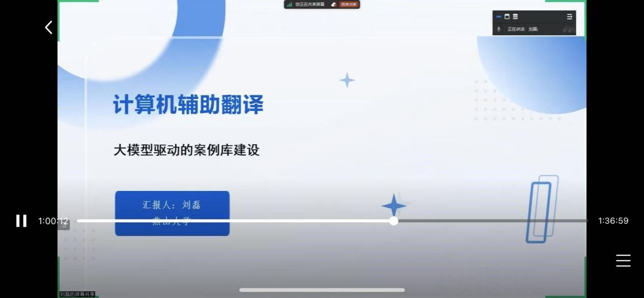 随后,刘磊副教授为大家带来了“计算机辅助翻译大模型驱动的案例库建设”的主题报告。他详细介绍了该项目的背景、目标、教学方法及具体案例。随着大模型技术的发展,编码能力日益强劲,为文科生学习编程和数据处理提供了便捷途径。他提到,通过开发专门用于对齐多语种、制作多语种翻译记忆库或平行语料库的工具,能够大大加速建库流程。刘磊副教授还结合具体案例,展示了如何利用大模型找到原文与英文翻译关系的文本,引导学生思考并提升批判性思维能力。他强调,虽然大模型功能强大,但学生仍需夯实专业基础,学会选择性地接受大模型的建议,勇于创新。