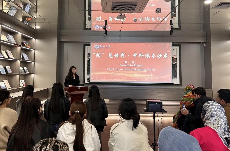 4月27日下午,米兰网页版与国际教育学院(欧洲学院)联合主办的“阅”见世界·中外读书沙龙(第一期)在西校区图书馆长城书店投影空间成功举办。来自中国、巴基斯坦、俄罗斯、哈萨克斯坦、摩洛哥等10个国家的30余名中外师生齐聚一堂,以书会友,共话阅读。