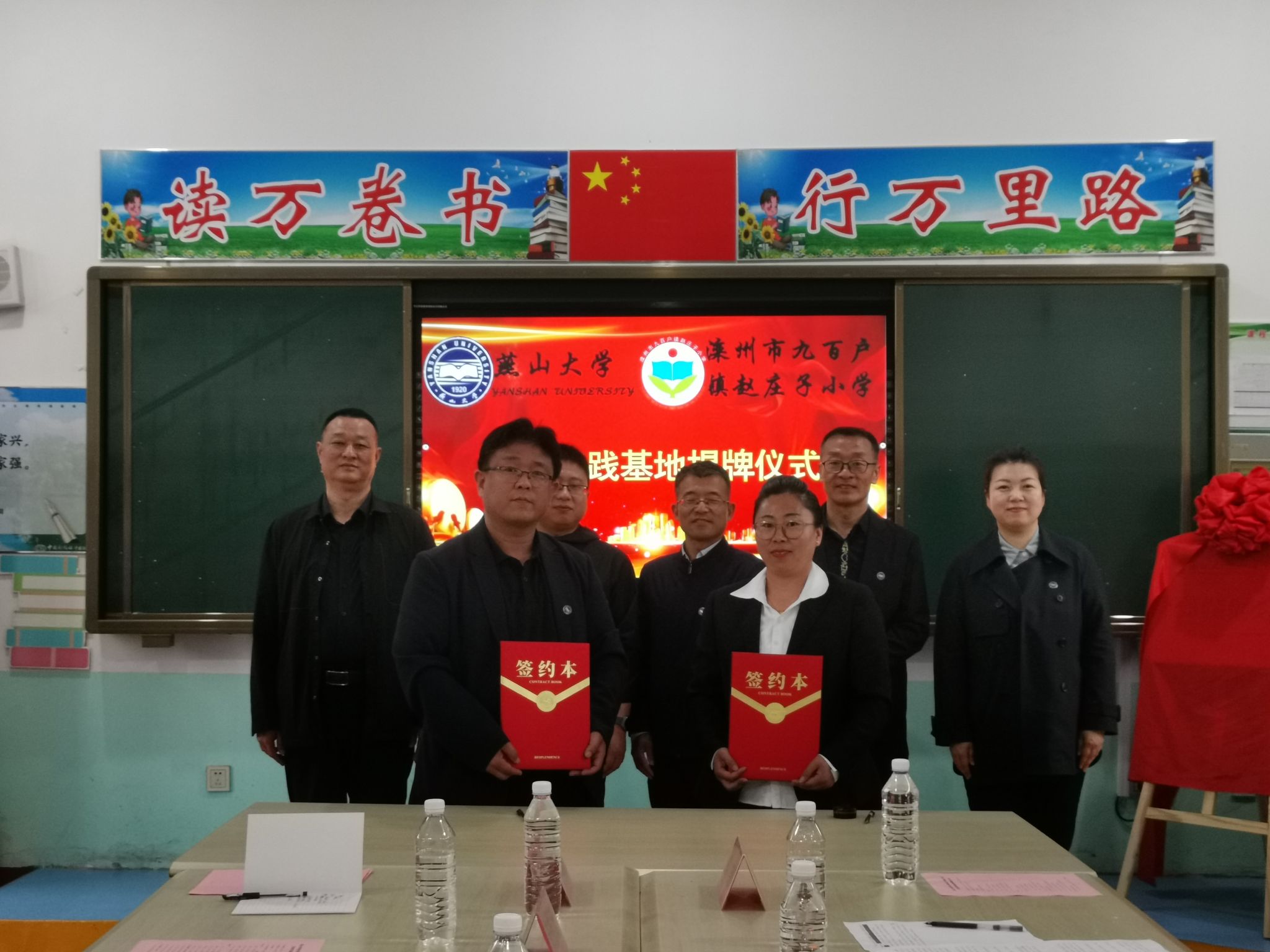 为深入贯彻落实乡村振兴战略,助力乡村教育高质量发展,米兰网页版充分发挥外语学科专业优势,积极为乡村教育发展提供“外语智慧”。5月14日,米兰MILAN(中国)党委书记屈晓阳、副院长付继林、赵志刚、党委副书记夏亮亮一行赴滦州市九百户镇赵庄子小学开展交流,并举行了英语教学实践基地签约暨揭牌仪式。燕山大学驻九百户镇南赵庄子下沉工作队队长徐向伟、九百户镇镇长苏川茳、滦州市教育局副局长田习民、九百户镇赵庄子村党支部书记田志强、九百户镇赵庄子小学校长张艳丽、出席签约仪式。