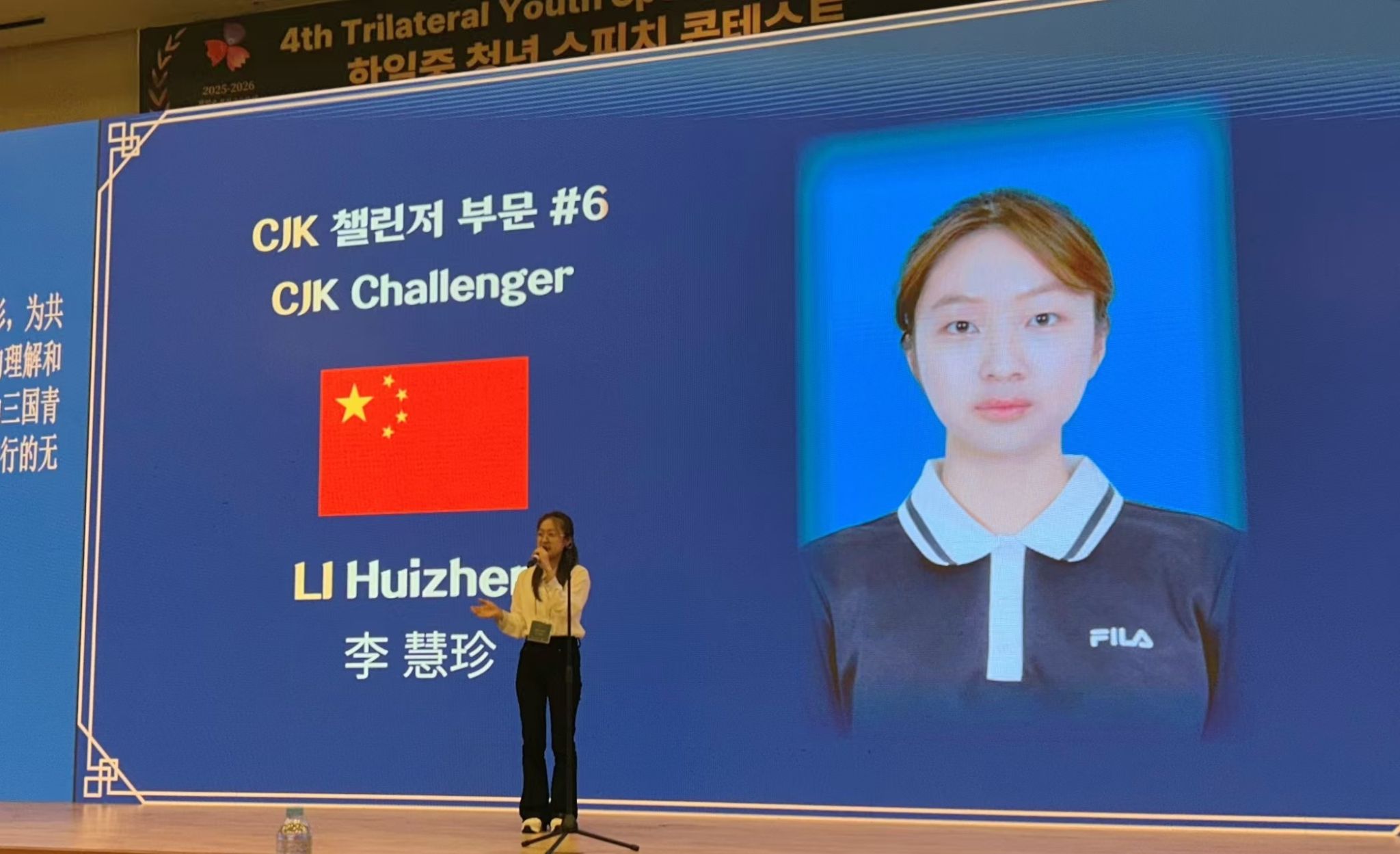 近日,米兰网页版日语系23级学生李慧珍在第四届中日韩青年演讲比赛中表现优异,作为我国青年代表赴韩国釜山参加决赛,在青年外交舞台展现风采。