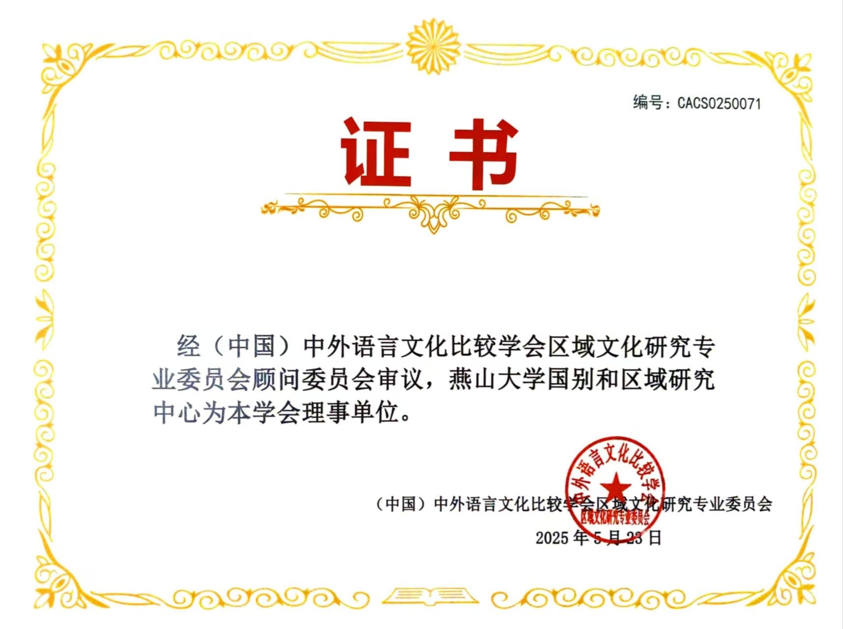 复旦大学建校120周年校庆之际,5月23-25日,“全球化背景下的区域国别研究:视域拓展与学科融合”论坛暨(中国)中外语言文化比较学会区域文化研究专业委员会成立大会在复旦大学召开,来自中国社会科学院和中山大学、清华大学等近200所高校的380位学者到场参会。在大会上,燕山大学国别和区域研究中心入选区域文化研究专业委员会理事单位。