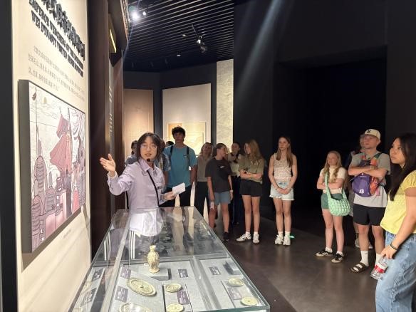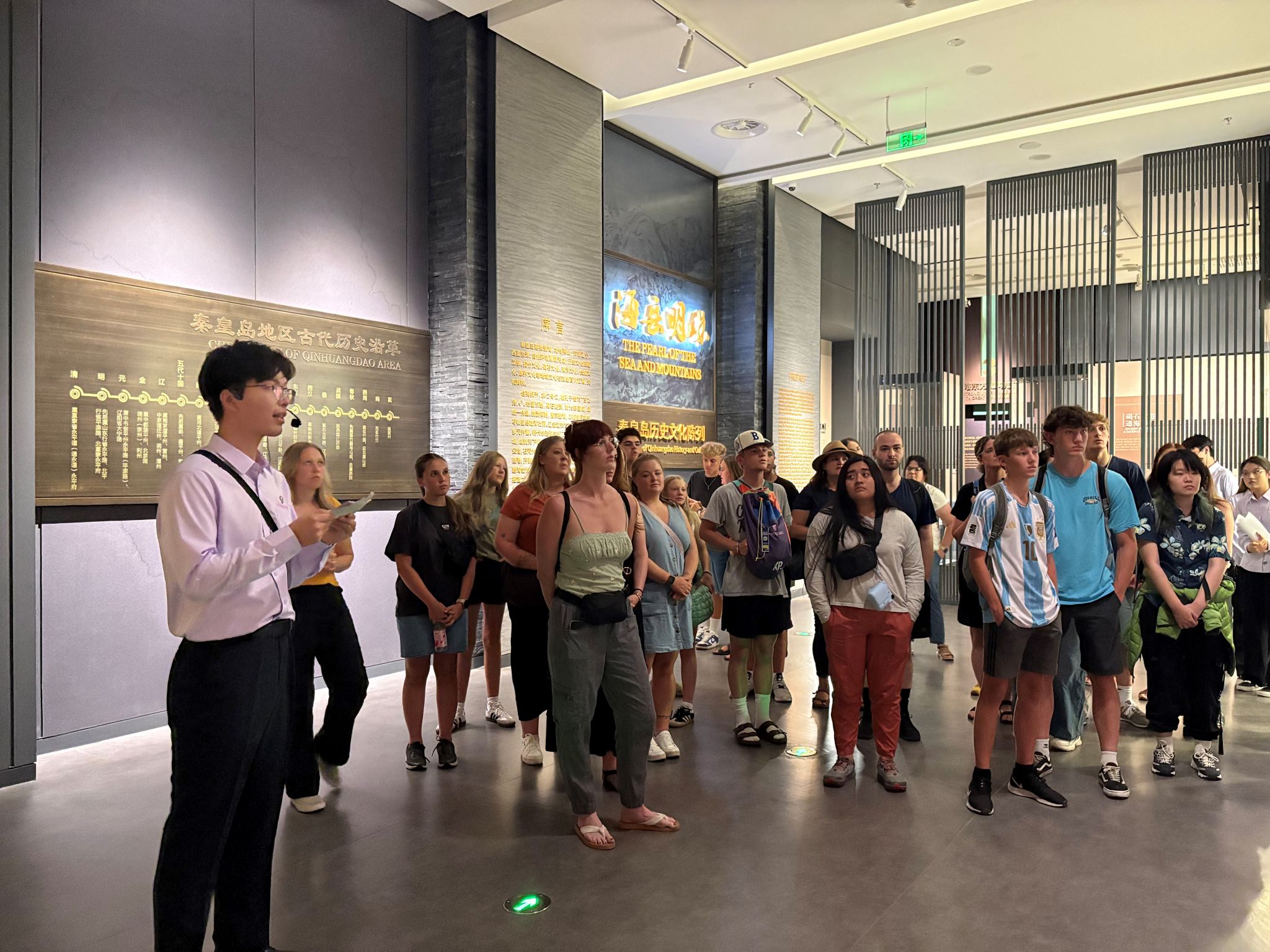 在首场接待活动中,外文讲解员们凭借扎实的语言功底和深厚的文化素养,通过流畅的英文讲解和生动的互动问答,将碣石沧海见证的千年文明与馆藏珍品的独特魅力娓娓道来。美国师生们沉浸在这场文化盛宴中,不时驻足聆听、积极互动。他们纷纷表示,专业的外语讲解不仅消除了语言障碍,更让他们深刻领略到这座滨海城市的历史积淀和中华文化的博大精深。