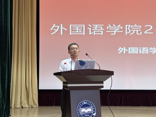 屈书记首先代表学院全体师生向来自全国各地的新生表示热烈欢迎。他指出,新时代外语人正面临百年未有之大变局,肩负着从“传声筒”向“中国故事讲述者”“全球治理参与者”和“人类命运共同体建设者”转变的重要使命。他强调,外语人应当兼具家国情怀与全球视野,以卓越的语言能力和跨文化沟通力,讲好中国故事,传播中国声音,向世界展示真实、立体、全面的中国。