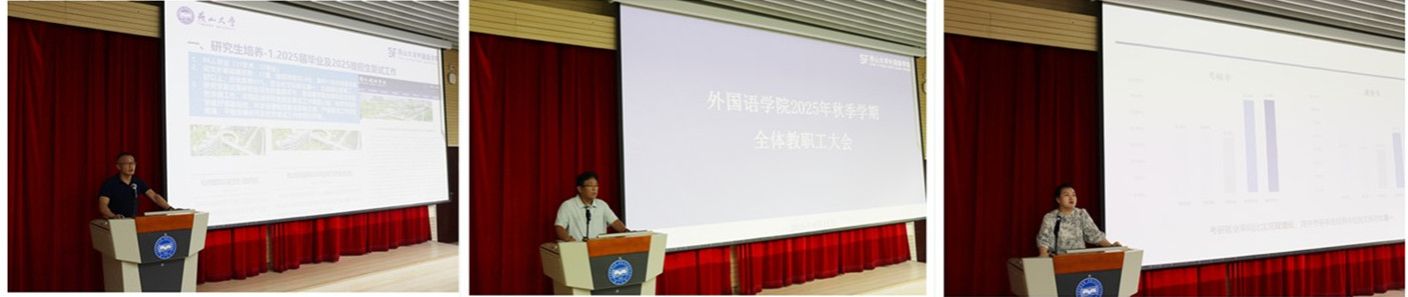 副院长付继林从研究生培养、科学研究、学科建设、国际交流与合作等方面重点工作进行了安排布置。副院长赵志刚从本科教学、教学竞赛、教学纪律等方面布置了秋季学期教学方面重点工作。党委副书记夏亮亮总结和部署了学生、工会等方面重点工作。