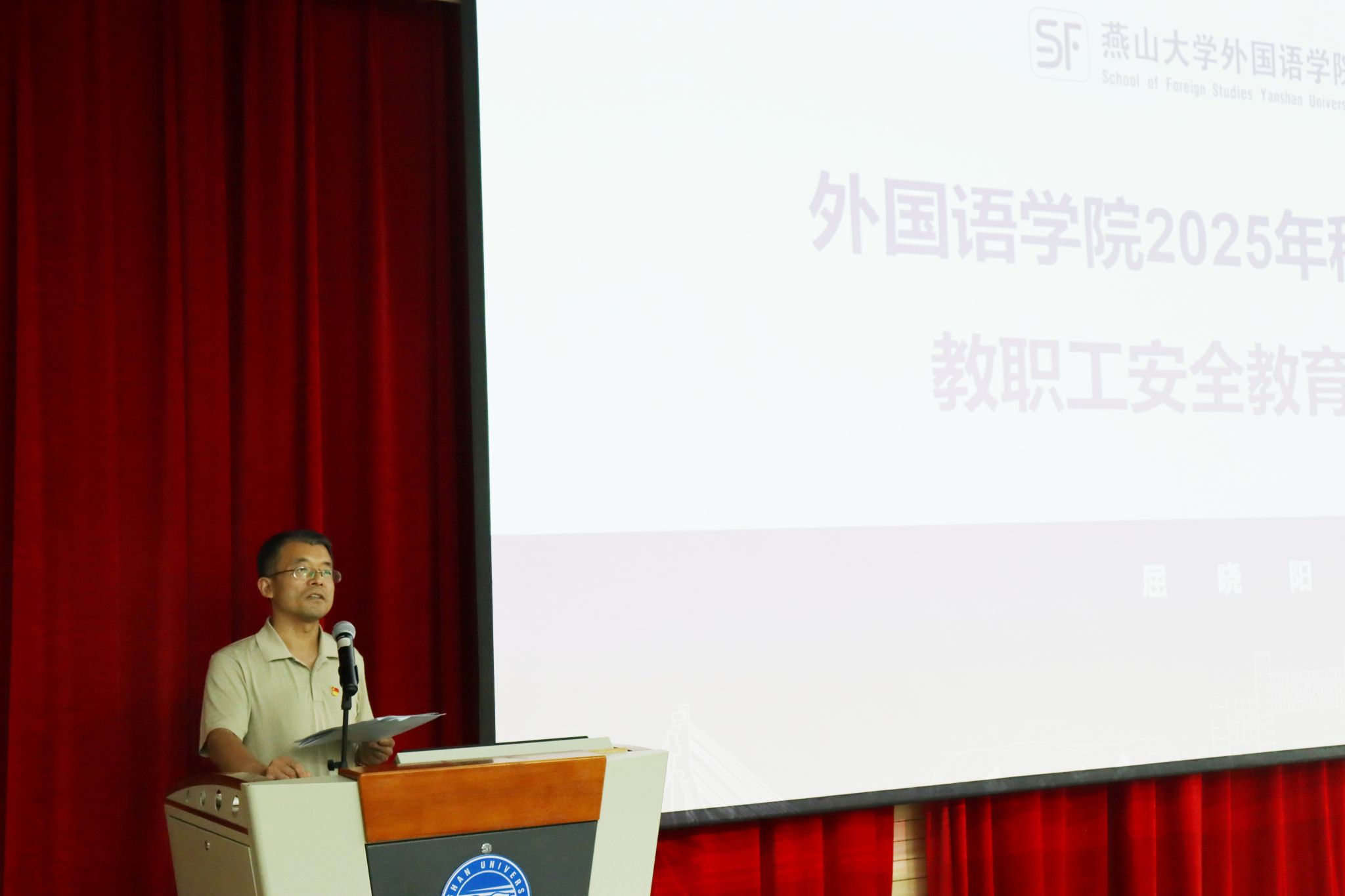 屈晓阳书记对全体教职工进行了师德师风建设培训和安全教育培训,并结合学院新学期中心工作从三方面提出了具体要求:一是要认真学习和领会,不断提高认识和站位;二是要守正创新和深入谋划,扎实稳妥的做好贯彻和落实;三是要统筹安全和发展,坚持目标和问题导向,促进学院内涵式高质量稳定发展。最后,他希望全院教师尽快从漫长的暑假休假模式切换到紧张有序的工作模式,调整好精神状态和工作、学习和生活的节奏,全身心迅速投入正常的工作状态,在学校党政的坚强领导下,在学院各级党政干部带领下,在广大师生的积极配合下,拼搏实干、努力奋斗、奋勇争先,为学校“双一流”建设攻坚克难和学院内涵式高质量发展贡献力量!