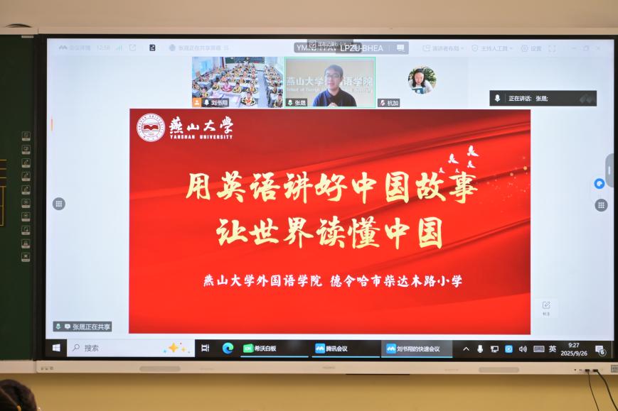 在中华人民共和国成立75周年的重要历史节点,米兰MILAN(中国)联合燕山大学研究生支教团,于9月26日共同开展了“语心向党”爱国主义教育双语主题党课,将优质教育资源与理想信念教育送至柴达木路小学。此次活动既是我院创新语言教学形式、深化思政教育融入的具体实践,也是发挥高校学科转业特色、服务基层教育、推动 “大思政课” 落地生根的生动体现,彰显了我院在立德树人工作中的主动作为与责任担当。此次党课由张晟、赵佳怡和杨欣悦三位优秀学生代表主讲。