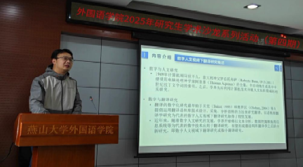 首先,在导师分享环节,王帣斐导师以《基于文献计量的国内外翻译数字人文研究热点领域与前沿话题对比分析》为题作主题报告。报告中,王老师聚焦数字人文视域下翻译研究的新范式,系统探讨从“语料库翻译学”向“数字翻译研究”演进的核心路径、关键方法与未来发展趋势,并结合研究实例与参会研究生展开深度互动交流,为同学们精准把握该领域学术前沿提供了重要指引。