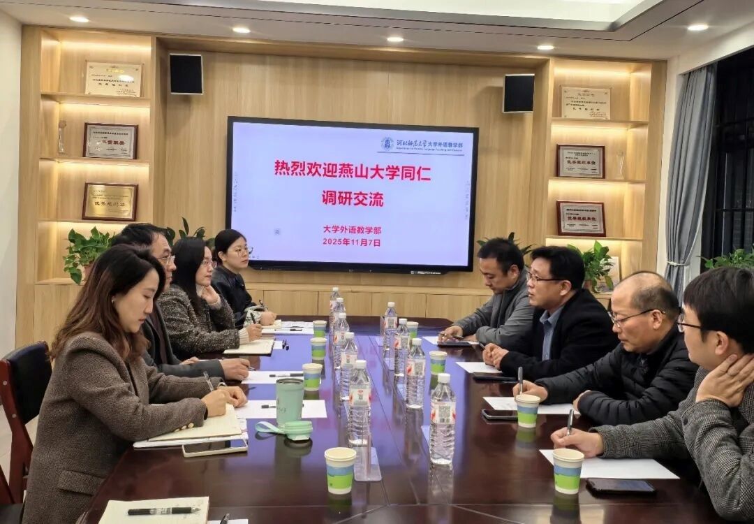 调研过程中,兄弟院校分别就外语师范专业建设思路、人才培养方案设计、课程体系改革与实践、教学成果培育机制以及创新创业教育组织方式等内容进行了系统介绍,并与我院调研组围绕外语专业建设、师范专业认证、课程标准制定、教学团队建设、课堂教学改革、教育实践环节组织以及学生就业现状等内容进行了深入交流。