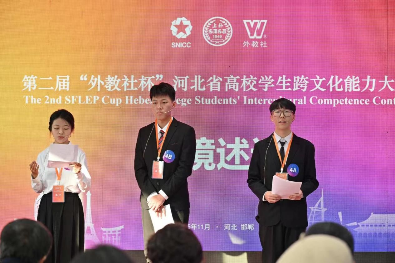 2025年11月16日,第二届“外教社杯”河北省高校学生跨文化能力大赛落下帷幕。大赛精彩纷呈,我校代表队经过激烈角逐喜获河北省特等奖,并将代表河北省参加12月11日至14日在上海外国语大学举办的全国总决赛。