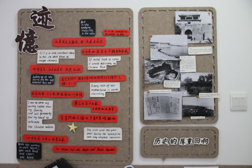 “一平米・看文化”学生社区微型移动博物馆第二期——滦东抗战胜利历史资料展,采用“实物+多语种+数字化”融合模式,将外语专业特色与红色文化传播深度绑定,打造家门口的红色育人阵地。