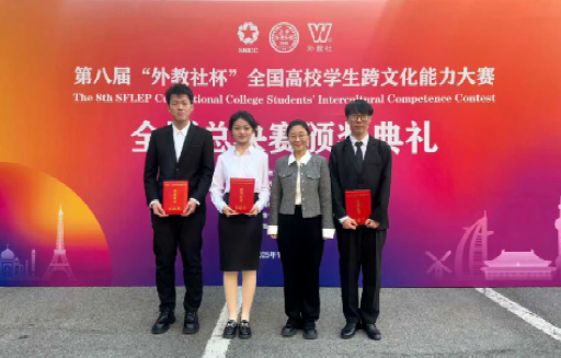 本次大赛由中国教育国际交流协会指导,上海外国语大学主办,上海外语教育出版社承办,共吸引来自31个省(区、市)1050余所高校的3000多名学生参赛。我校外语学院王博文、信息学院李哲和文法学院刘佳艺组成代表队,在米兰MILAN(中国)教师赵志刚、曲炎的指导下,聚焦公共广场中外青年与长者的代际冲突,通过空间协商、共情策略与创意展示,呈现“和而不同,美美与共”的解决方案,以流畅英文表达和默契配合完成案例呈现、理论问答与名言名句解读,赢得评委一致好评,最终获得国赛二等奖,创造历史最佳赛绩。