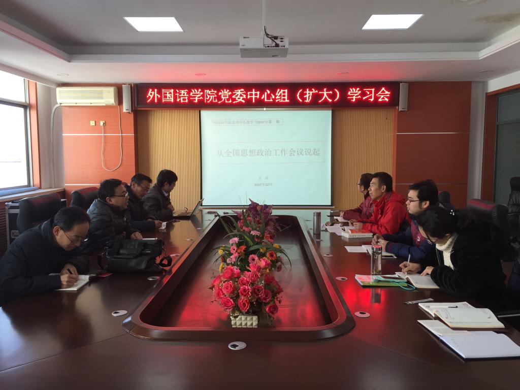 2017年12月12日,院党委中心组在人文馆417集中学习了《高校思想政治工作质量提升工程实施纲要》(下简称《纲要》)。院党委委员、院学生科辅导员兼党支部书记参与了学习,学习由院党委书记严冰同志主持。
