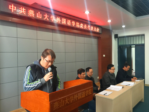 根据《燕山大学2016年基层党的委员会及党支部换届工作方案》要求,我院认真组织开展了2016年基层党委及党支部换届工作。4月14日下午16:00,中共米兰网页版党员代表大会在人文馆报告厅胜利开幕,71名师生党员代表参加了会议。大会由副院长付继林同志主持。