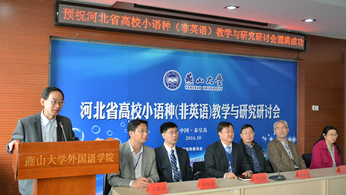 燕山大学副校长赵永生教授、河北省教育厅高教处副处长高明、河北省高等学校外语教学指导委员会、河北省高等学校外语教学研究会会长李正栓教授等出席了研讨会。来自北京外国语大学、上海外国语大学、北京语言大学、中国人民大学和河北大学的五位特邀专家以及河北省内18所高校的包括日语、俄语、法语、德语、韩语、西班牙语、意大利语、阿拉伯语、匈牙利语等9个语种的百余名教师参加了此次研讨会。