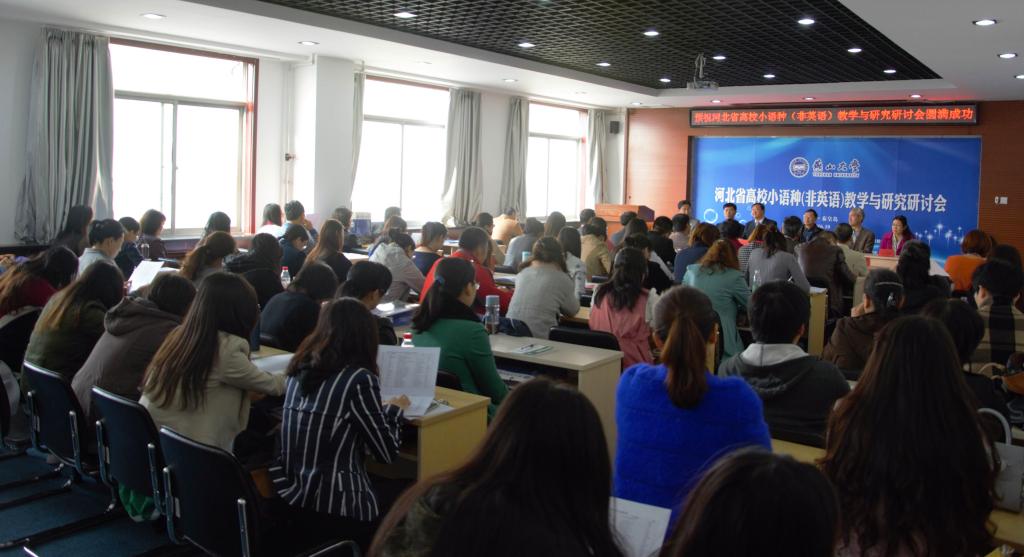 北京语言大学的王秀丽教授、中国人民大学的李铭敬教授、河北大学的张如意教授、北京外国语大学的张建华教授以及上海外国语大学的李勤教授分别从小语种教学、小语种文化传承、小语种科研及其它相关学术问题进行了主旨发言。与会的专家学者针对上述问题进行了积极、热烈、深入的讨论,纷纷为河北省小语种学科发展献言献策,从不同的视角全面分析了我省在小语种学科发展过程中取得的成绩、存在的问题以及在新时期我省小语种学科建设的发展方向和具体措施,进一步明确了小语种学科在地方经济建设、“一带一路”国际化战略推进以及京津冀一体化建设等方面所应承担的促进、协调、融合、沟通和助力职责。