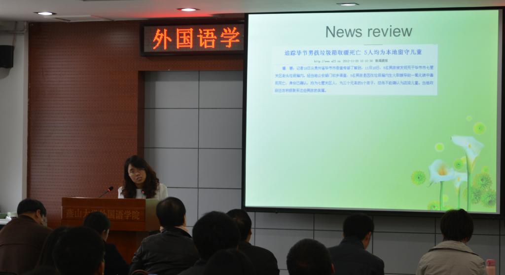 最后,郑占国副院长公布了比赛结果,并代表学院对参赛教师进行了表彰。英语系刘磊、德语系马良、法语系王媛媛和大学英语一系赵觅老师获得了一等奖,他们将代表学院参加燕山大学第八届青年教师基本功大赛。