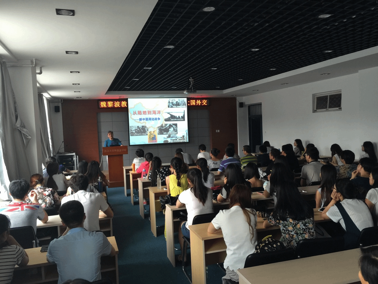 魏黎波老师分别从我国疆土的几个区域讲解了我国目前的周边的安全形式,具体讲到了从陆地到海洋,“伊斯兰国”异军突起、欧盟盟友关系在复杂演变中的调整等几个方面。随后,魏黎波教授又详尽的分析了国际体系面临的新变革,我国外交政策的调整与应变。