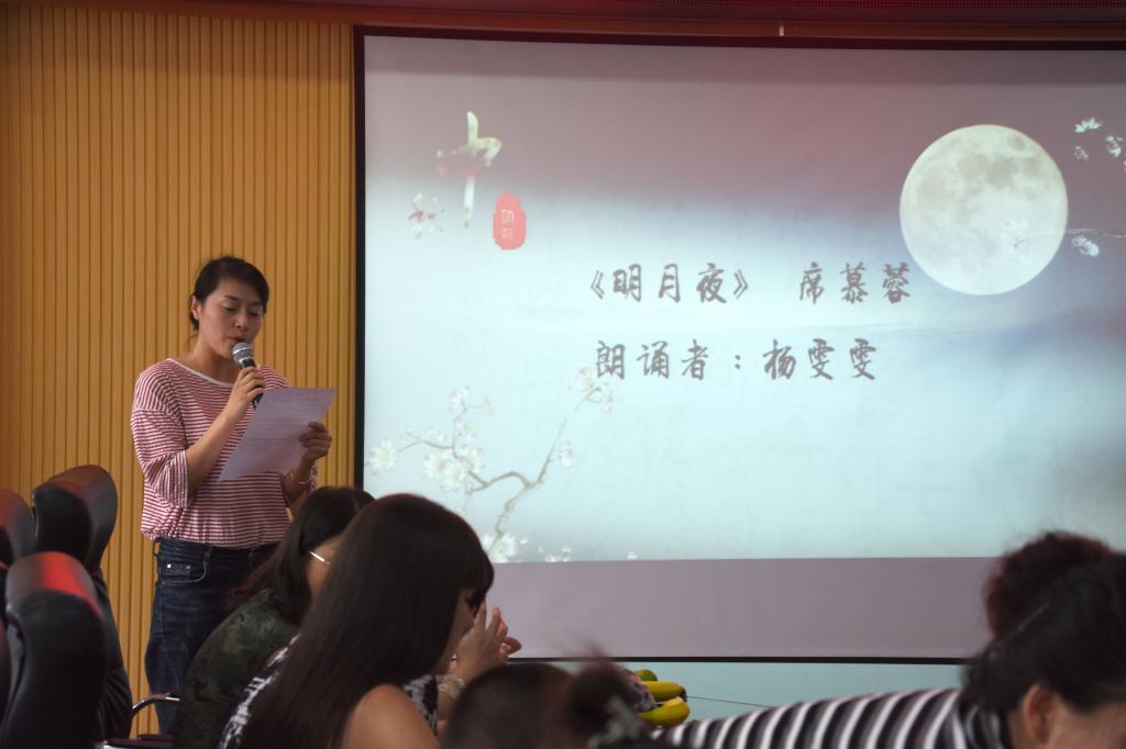 活动中有稚嫩的童声,也有老师们的动情演绎;有古典诗歌的百转低回,也有现代诗歌的激昂奔放;有朗朗上口汉语诗歌,也有俄语英语的别样魅力。《一剪梅》、《鹊桥仙》、《满月下》、《十五夜望月》、《月下独酌》、《静夜思》、《水调歌头明月几时有》……一首首经典传递的是一辈辈中华儿女期盼中秋团圆的家国情思;《明月夜》、《越人歌》、《教我如何不想她》、《三字经》、《千字文》展现的是中国经典美文经久不衰的魅力,中文和外语交汇,团圆期许就这样凝聚蔓延。但愿人长久,千里共婵娟。古往今来,或许表达感情的方式会变化,但是那一份真情,亘古不变,熠熠生辉。