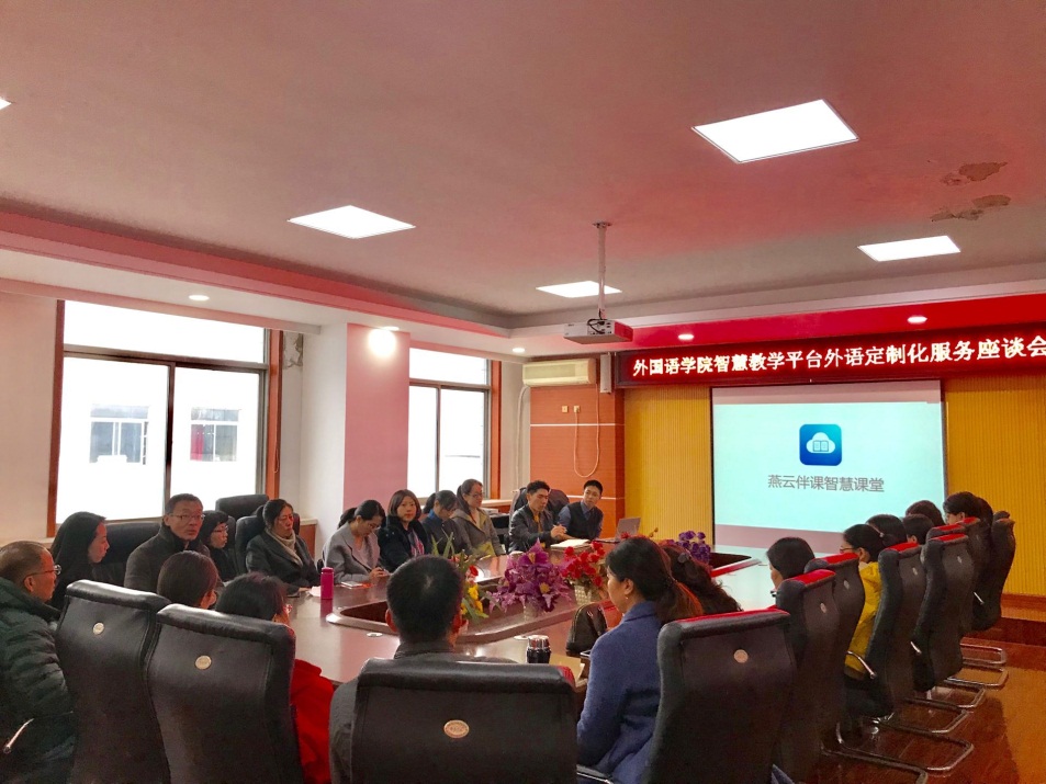 12月21日下午3:30在人文馆417,米兰MILAN(中国)举办了《米兰MILAN(中国)智慧教学平台外语定制化服务培训会》。会议由教学副院长付继林主持,“燕云伴课”智慧教学平台的开发设计者信息学院冯建周老师应邀参加了培训,来自全院所有专业的9个智慧教学团队的36位教师参加了会议。
