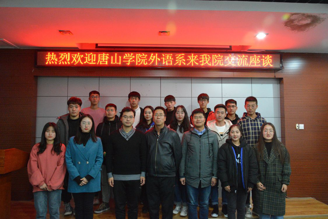 2019年11月7日下午,唐山学院外语系团委学生会一行30余人在团总支书记王晓芳老师带领下来学院进行调研交流。学院团委书记安东老师和学生会成员在人文馆416与来访客人进行了座谈。