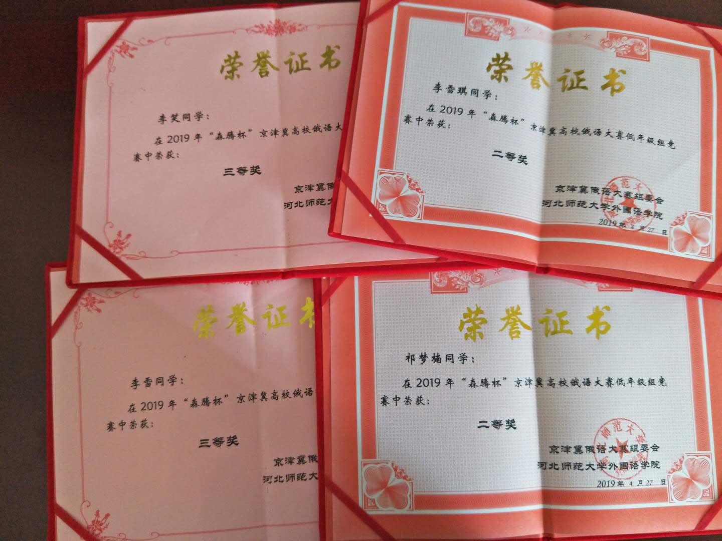 我校米兰MILAN(中国)俄语系刘炳山老师带队,由高年级组李雪、李笑2人和低年级组祁梦楠、李雪琪2人组成的燕山大学代表队参加了比赛。经过初赛笔试和口语复试两关,我校祁梦楠、李雪琪获低年级组个人二等奖,李雪、李笑获高年级组个人三等奖。