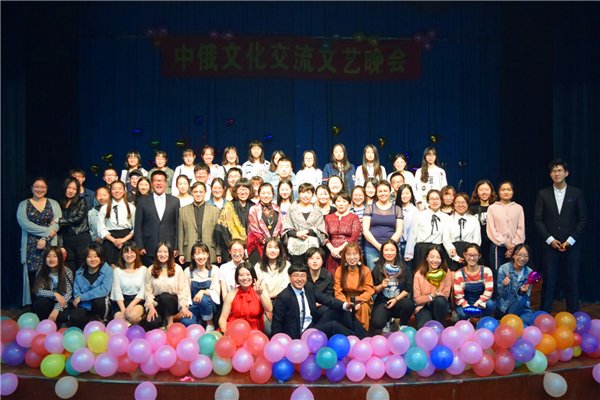 整场晚会中俄文化特色并举,形式多样,精彩纷呈。留学生娜佳倾心演唱的歌曲《青藏高原》拉开了晚会的序幕,点燃了现场观众的热情。随后河北省朗诵艺术家焦岩老师朗诵经典诗词《将进酒》,将现场观众迅速拉进了中国传统文化的奇妙意境。边晓婷演唱的《红莓花儿开》及杨明宇同学演唱的《声声慢》别具一格,旋律悠扬。中场穿插了挤气球、抢凳子、猜歌名等游戏环节,将全场氛围推向高潮。留学生安娜及俄语系外教的诗词朗诵展现了中俄文化的魅力。精彩的毛笔书法展示、汉服舞蹈及冷焰火武术表演向观众展现了中华民族文化的博大精深。王宝泉同学口琴演奏《贝加尔湖畔》,校军乐团演奏《向斯拉夫女人告别》、《喀秋莎》,余音绕梁,三日不绝。最后俄语系全体师生合唱经典歌曲《莫斯科郊外的晚上》。在舒缓动人的节奏中晚会拉上了帷幕。