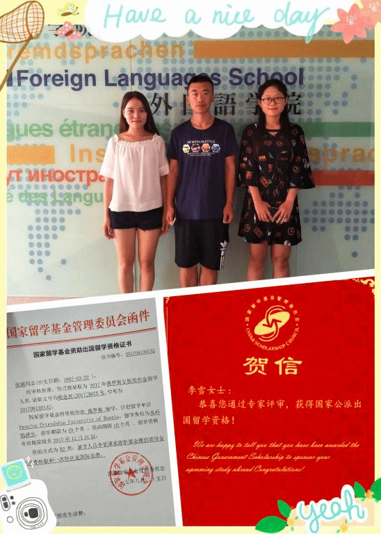 我院2015级俄语专业3名本科生(李笑、张颖、李雪)喜获国家留学基金委中俄政府奖学金资助,并将赴俄罗斯高校公派留学10个月。
